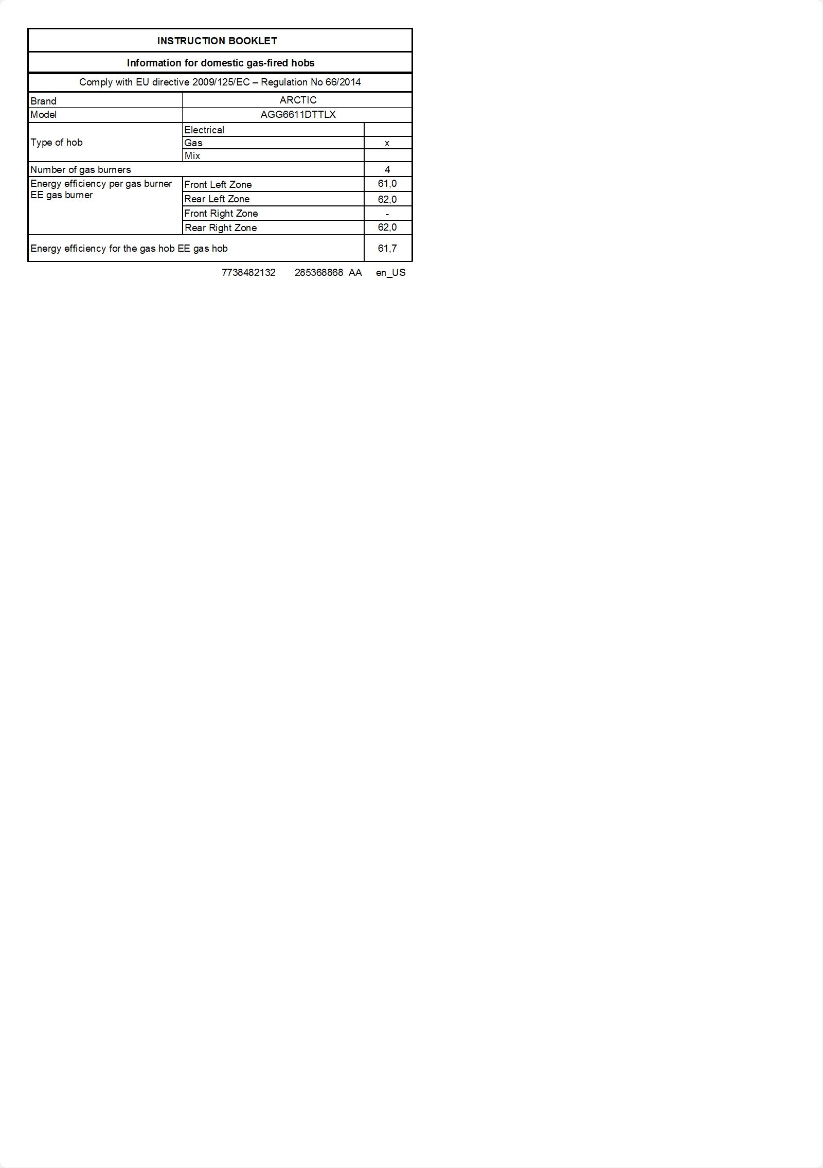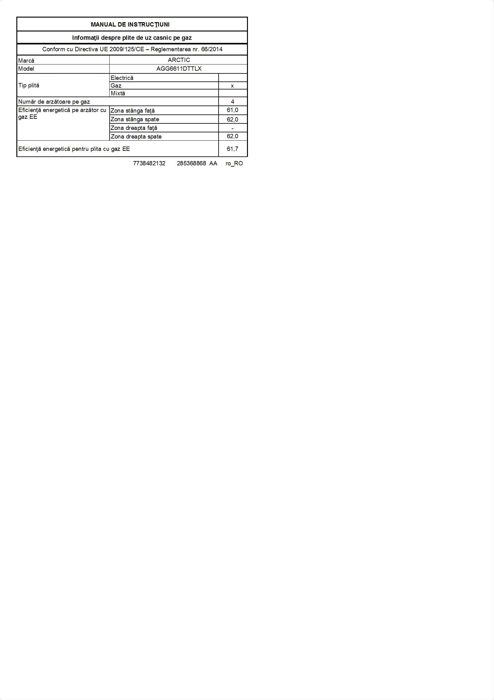 AGG6611DTTLX: Aragaz (Gaz, 60 cm)